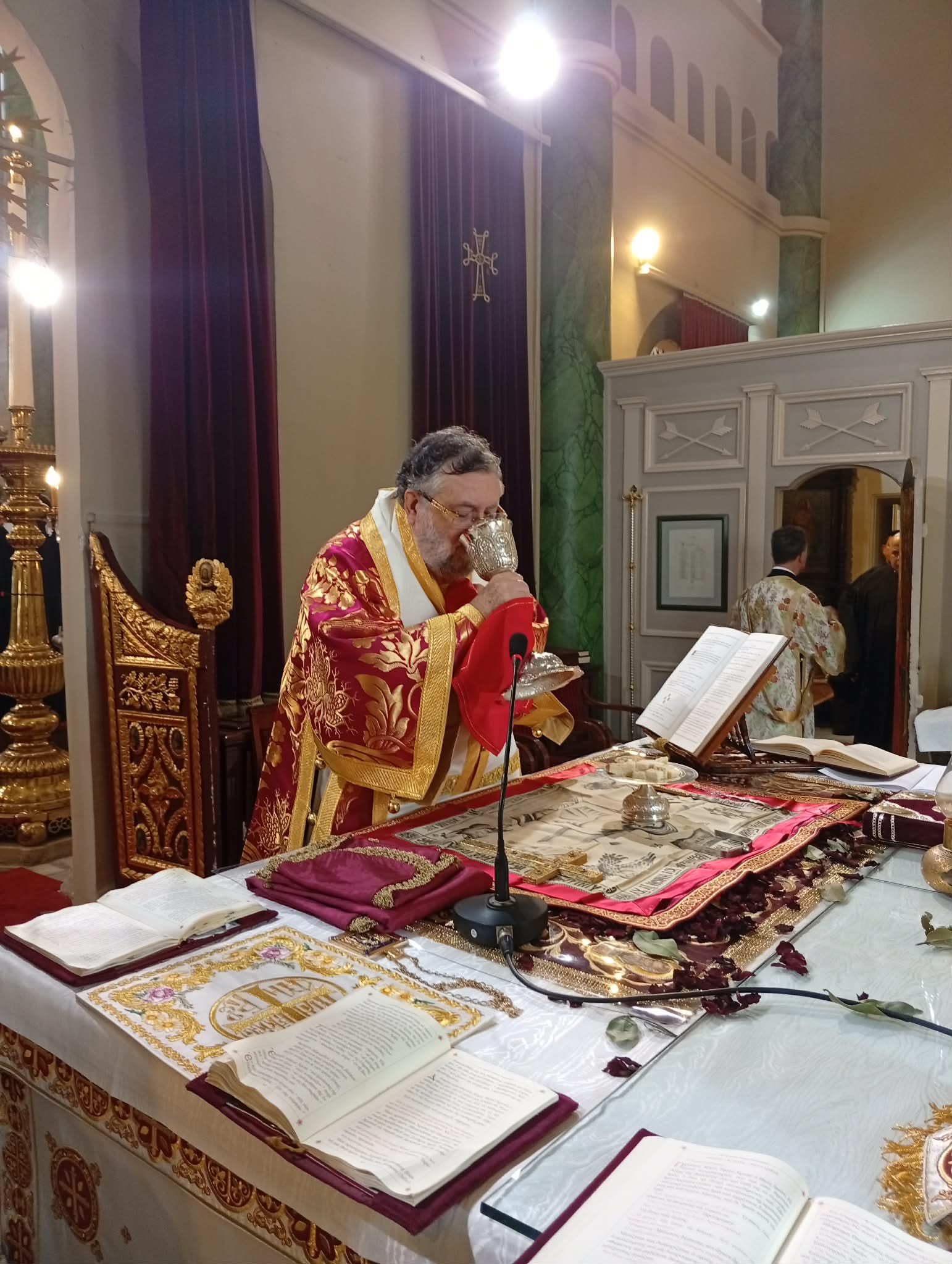 Κατ’ αυτήν παρέστη συμπροσευχόμενος και ο Ελλογ. Δρ. κ. Γεώργιος Νταμπαντζής, εκ παλαιού ομογάλακτος αδελφός και προσωπικός φίλος του Ποιμενάρχου μας, εκ των τελευταίων αποφοίτων της Ι.Θ. Σχολής Χάλκης και ιατρός εν Γερμανία.